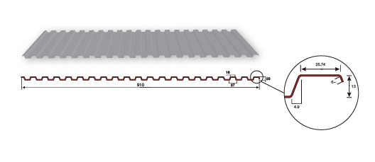 - Chapa perfilada lacada para cobertura e/ou fachada.